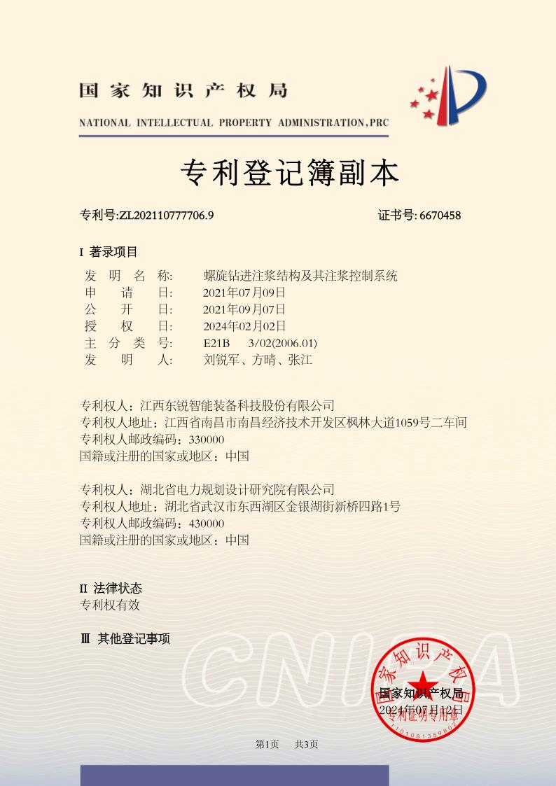 螺旋钻进注浆结构及其注浆控制系统