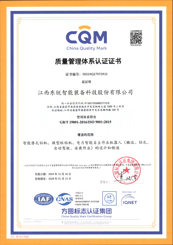 质量管理体系认证证书